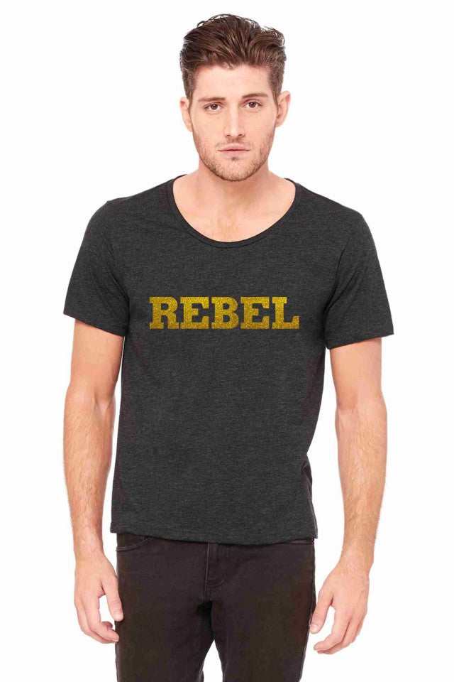 MAGLIETTA NERA 100% COTONE STAMPA GLITTERATO : REBEL