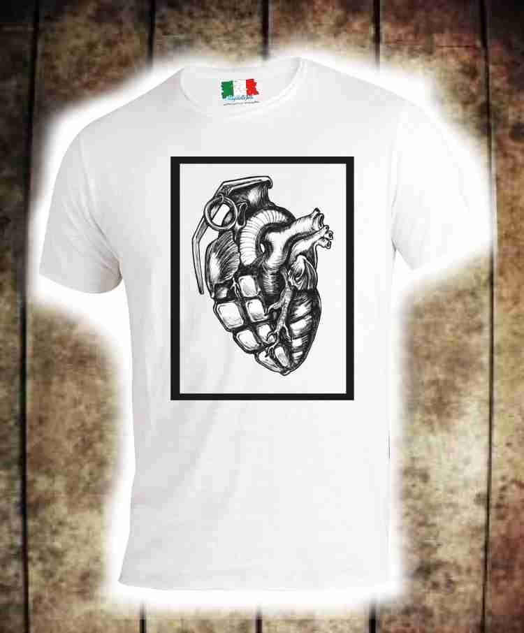 MAGLIETTA IN COTONE FIAMMATO DA UOMO TITOLO CUORE BOMBA
