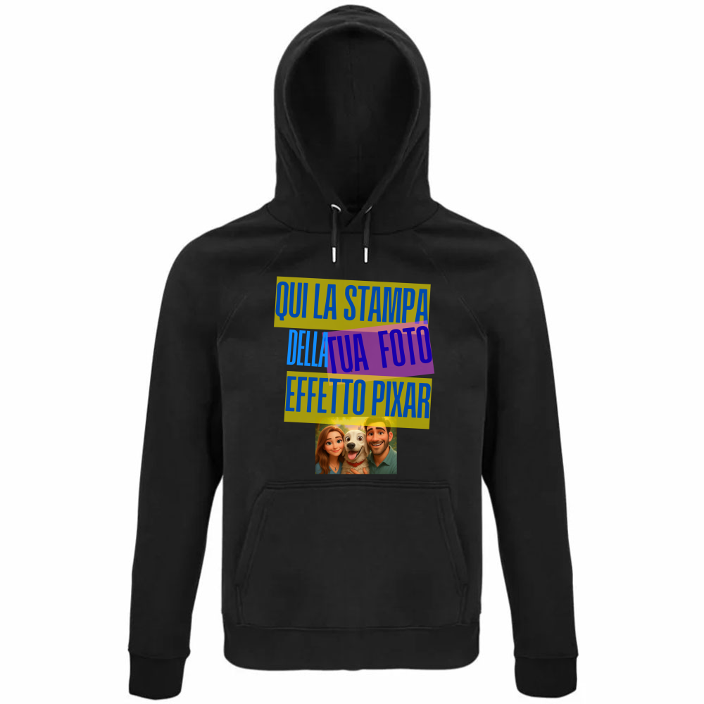 Felpa nera con cappuccio e marsupio personalizzabile effetto PIXAR