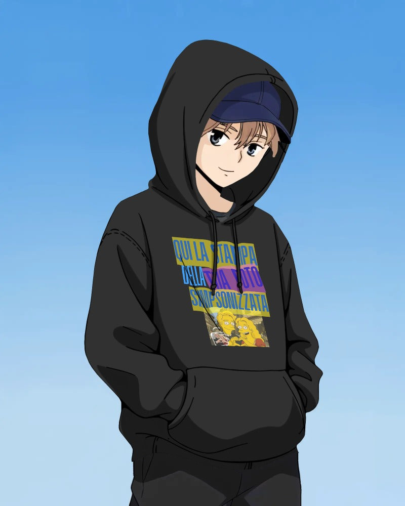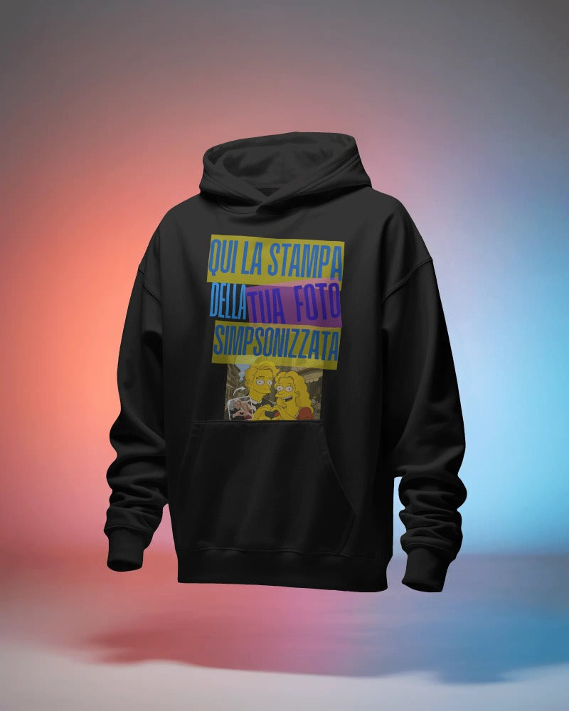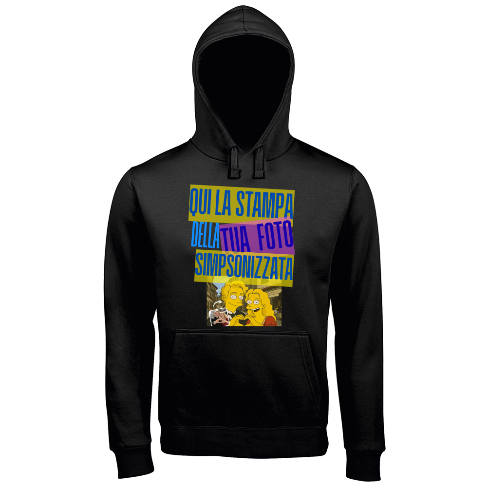 Felpa nera con cappuccio e marsupio personalizzabile effetto SIMPSON