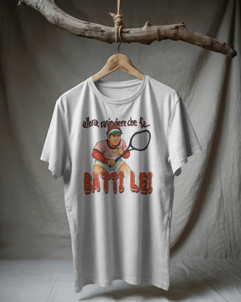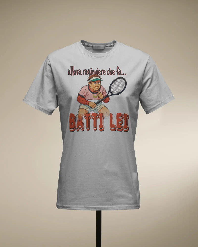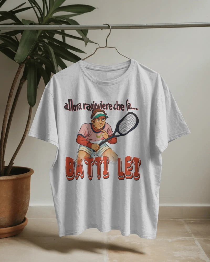Maglietta BIANCA con la stampa BATTI LEI CARTOON