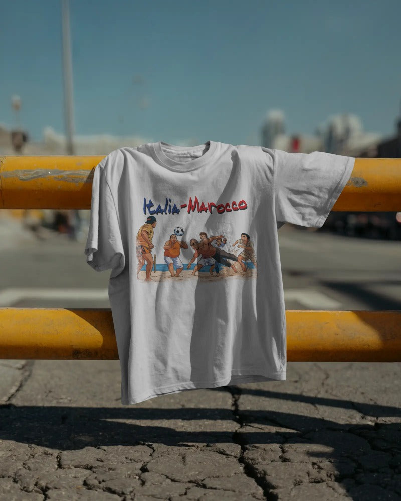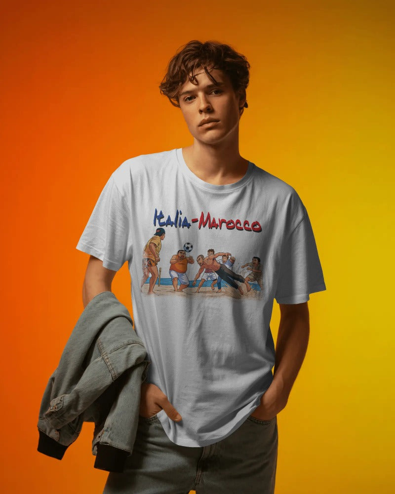 Maglietta BIANCA con la stampa ITALIA MAROCCO ALDO GIOVANNI E GIACOMO