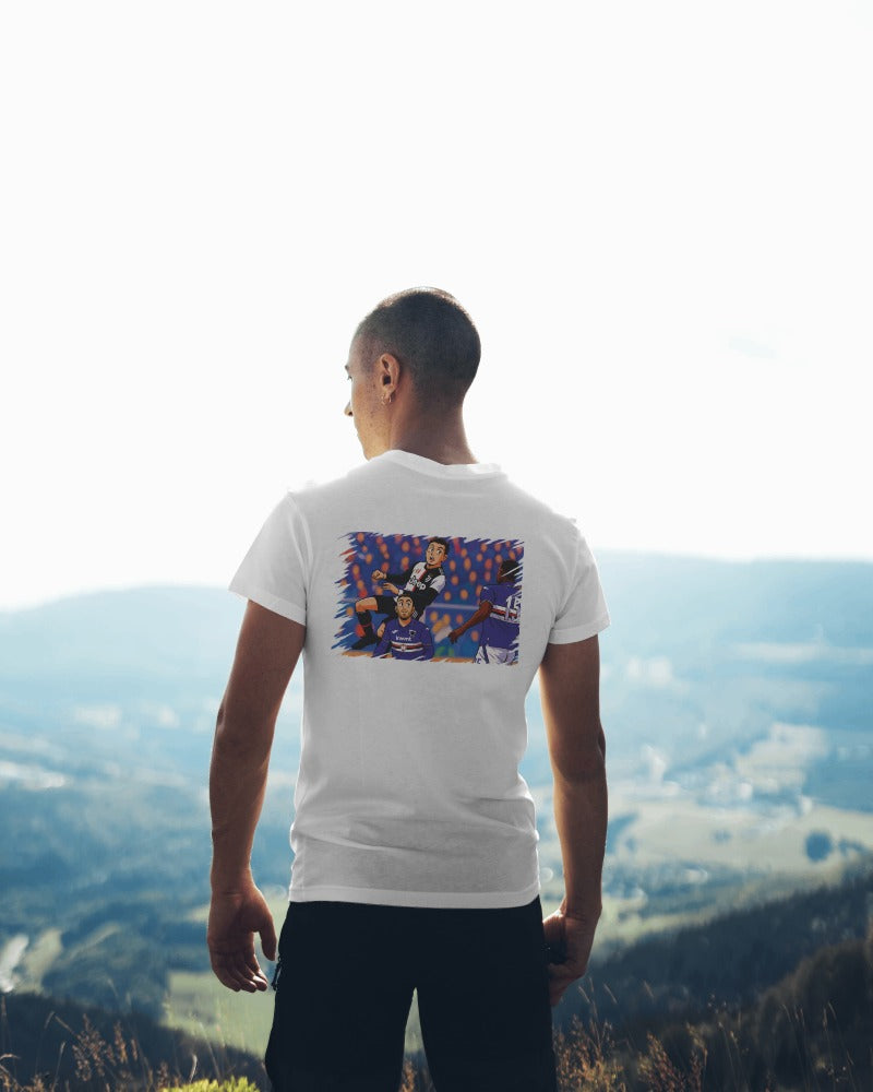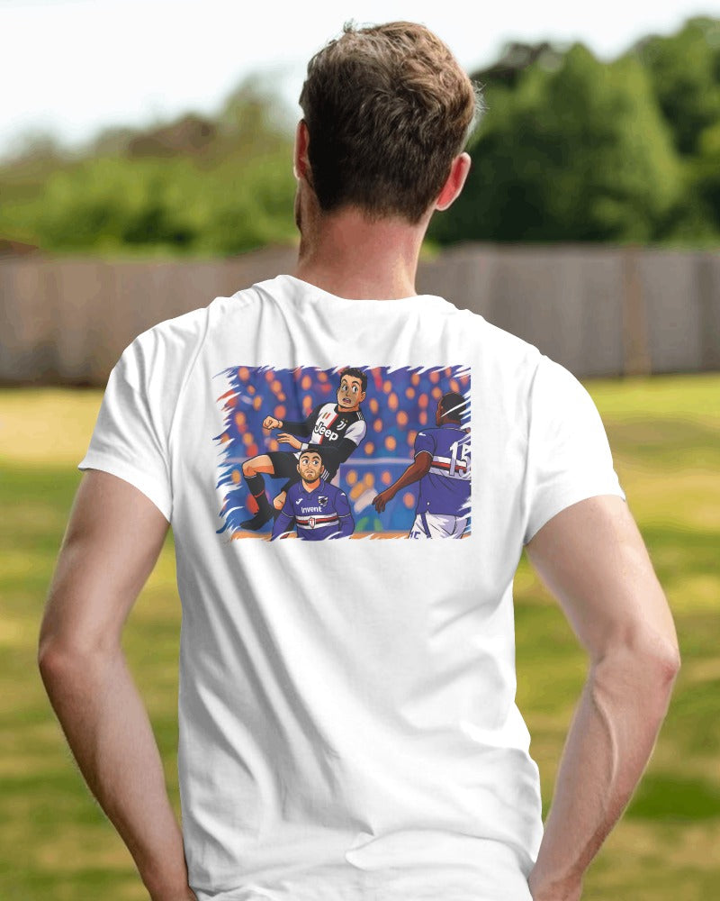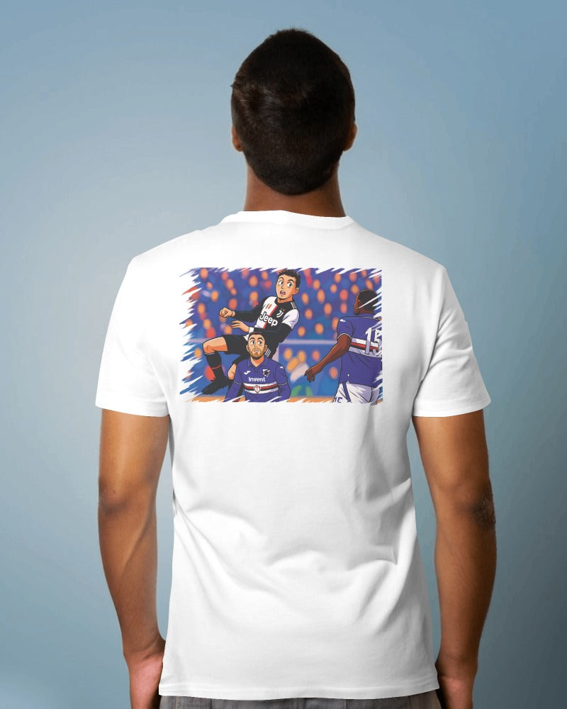 Maglietta bianca con stampa anche su retro IL GOAL DI TESTA DI RONALDO