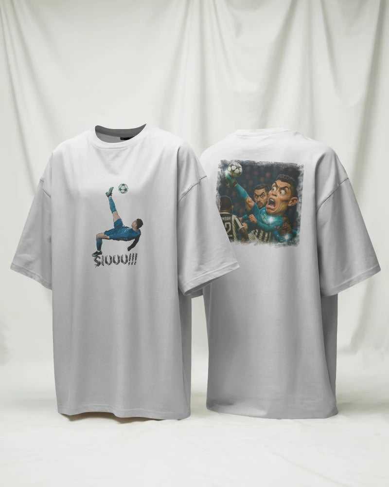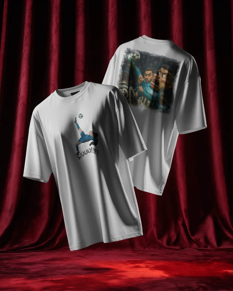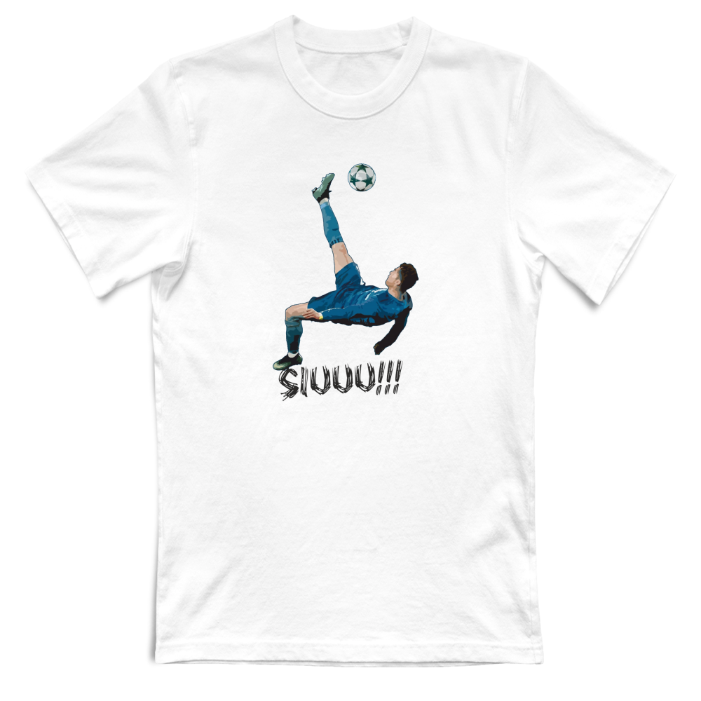 Maglietta bianca con stampa anche su retro la rovesciata di ronaldo